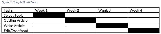 The Gantt chart also, and perhaps more importantly, helps me to think about “process” in the context of my work. Most of us miss the “process” issues!