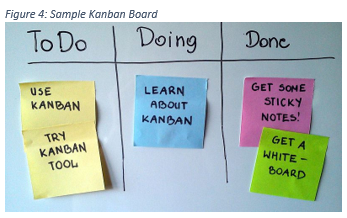 The Kanban board is a visualization tool that encourages optimal workflows. The board can be arranged in many forms, but typically has a “To Do” column, a “Doing” column, and a “Done” column. Simple enough! Tasks are compiled in the To Do column until they are pulled forward to the Doing column, and then pulled into the Done column when completed.